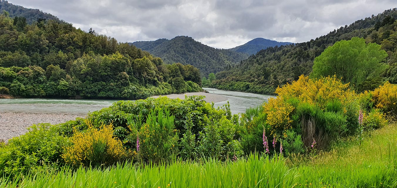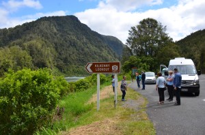 Various members of our group joined us outside the hotel waiting for pick up and then we were all comfortably seated in the van, luggage sorted at the back and we were off to Reefton. We drove north through the Waipawa region, with stop at Pegasus Bay Winery, before turning west to Lewis Pass stopping at Maruia Springs Café for our obligatory morning coffee.