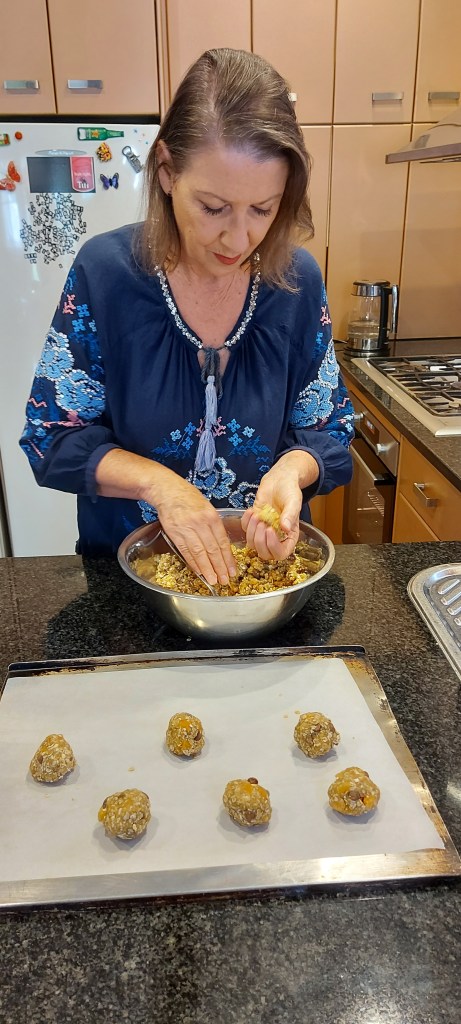 3. Shape: Roll large tablespoons of mixture into balls and place on the tray, leaving room to spread.