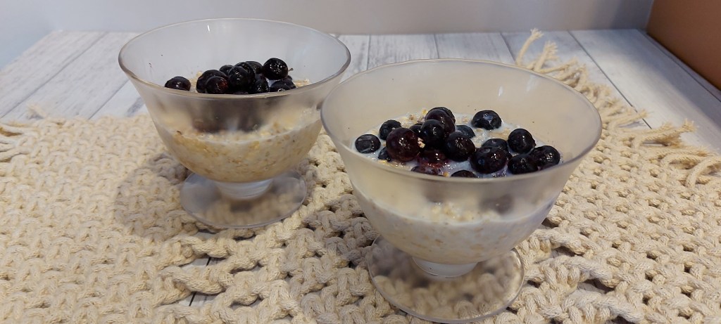 Simply put, it’s rolled oats soaked in liquid (like milk or plant milk) overnight in the fridge. By morning, they’re soft and creamy — no stove required.