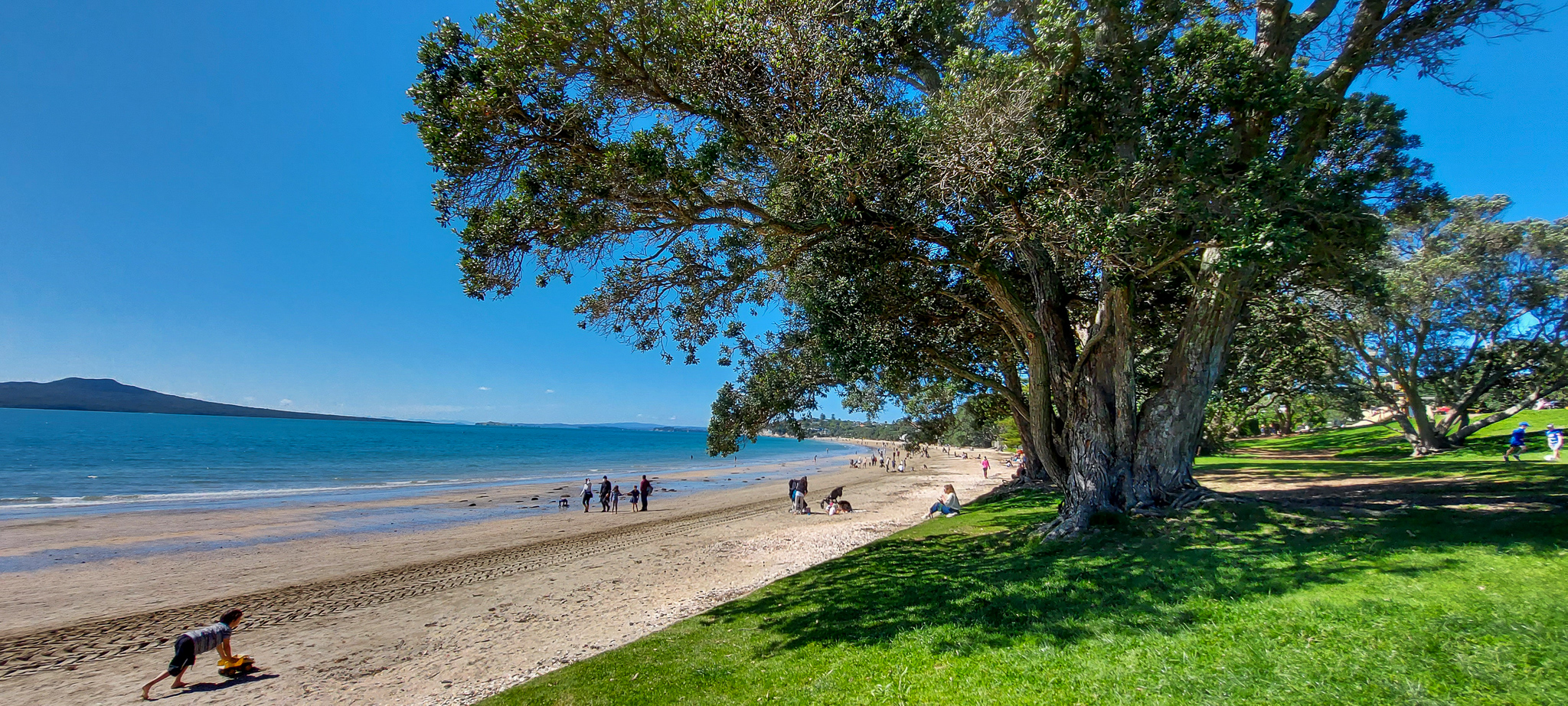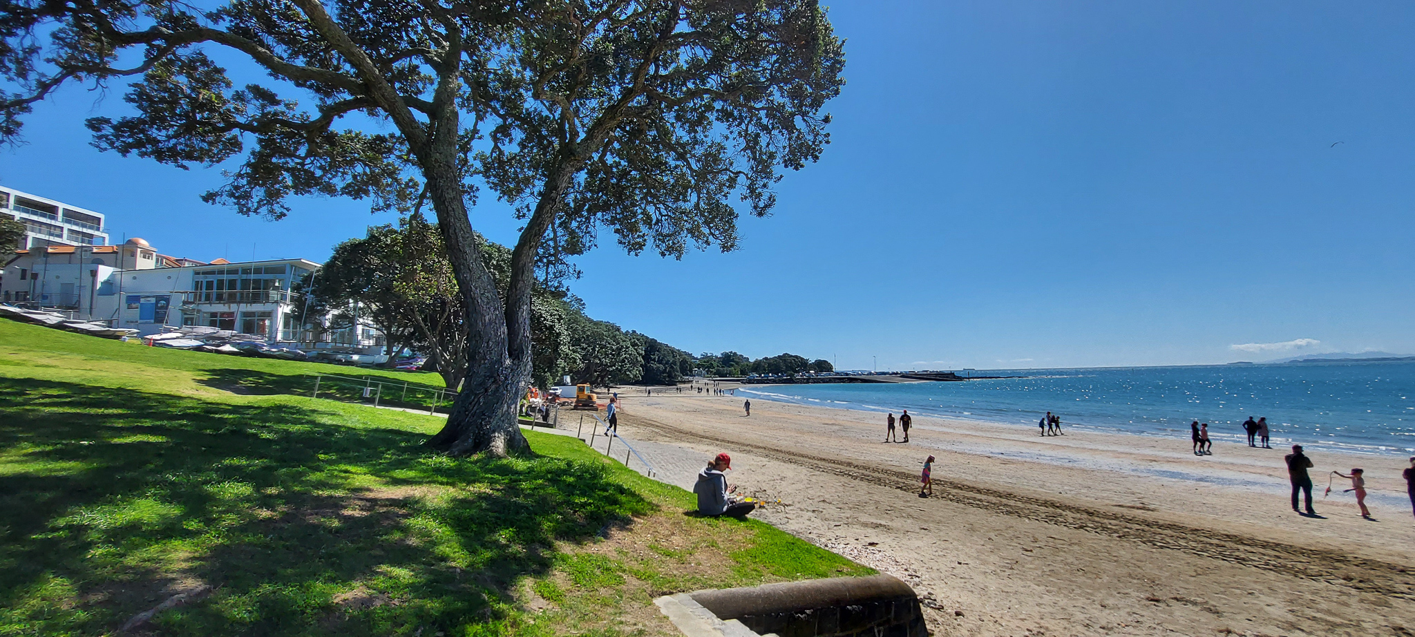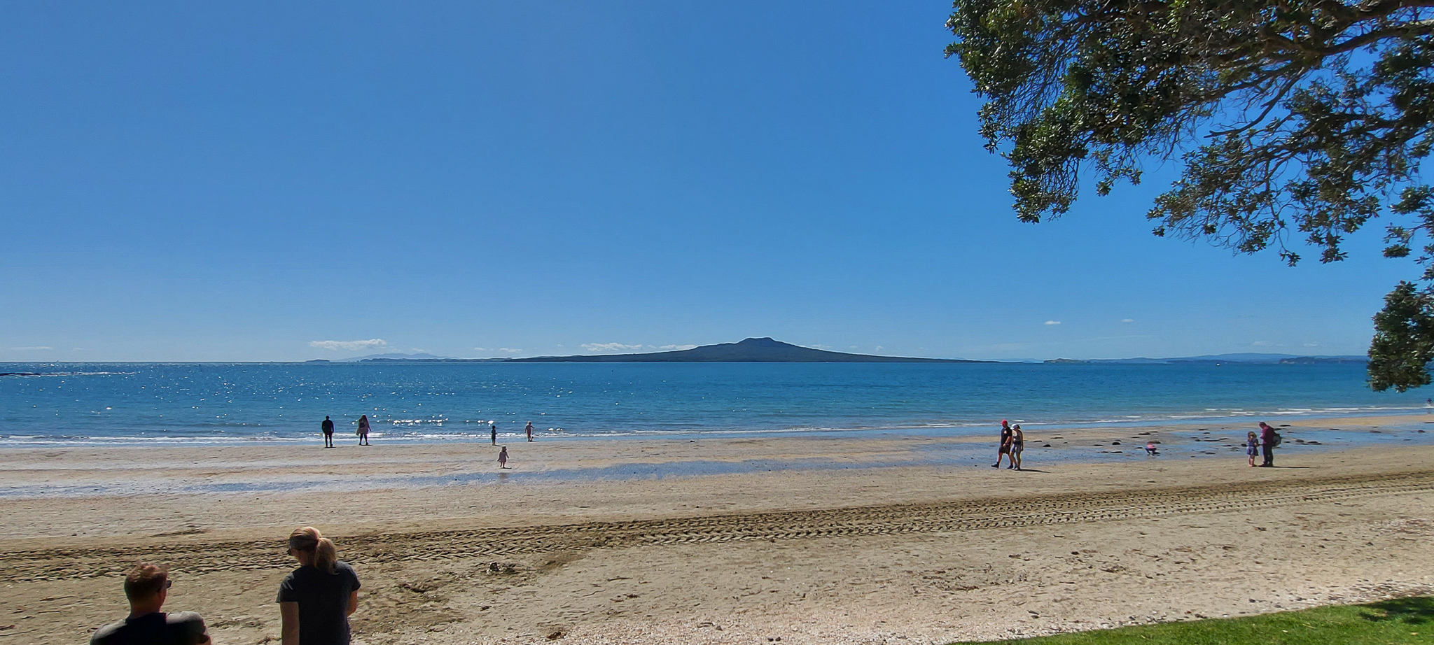The view to Rangitoto Island is fabulous, the sand and sea is great but at the same time you know you have great cafes nearby even though they are only serving takeaways at the moment. All this plus there are usually lots of children and families here providing an exuberant background sound of laughter and chatter.