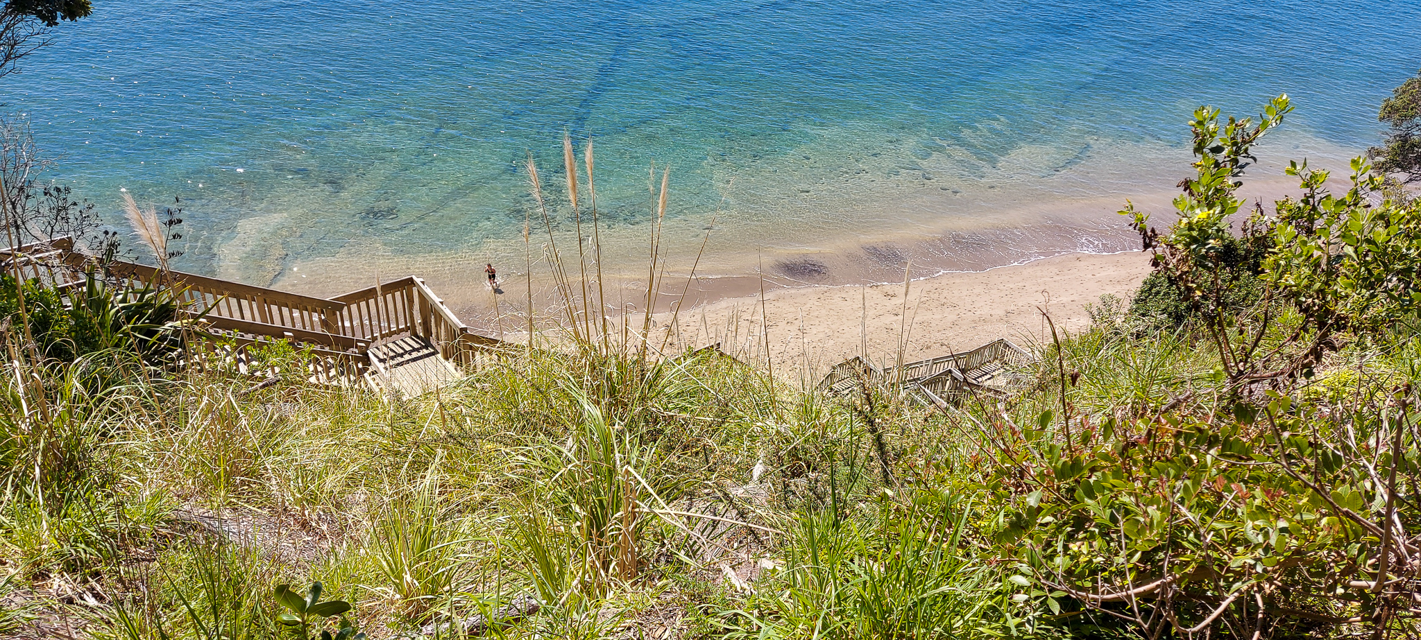 There is good parking and from the carpark you head towards the water and turn right along the clifftops to follow the Kennedy Park to Castor Bay Path. Stop at the lookout point at Kennedy Park to see the spectacular clifftop coastal views to Rangitoto Island.