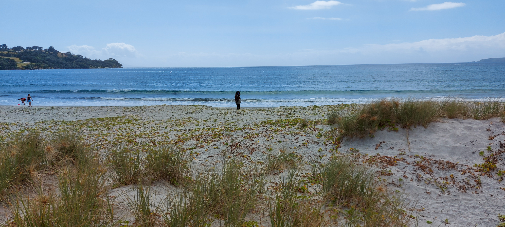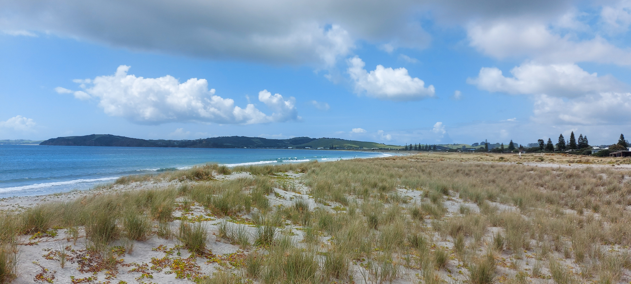 Omaha Spit is located on the east coast of the North Island, about 60 km north of Auckland. The spit forms a barrier between the open sea and Whangateau Harbour, a relatively unspoilt tidal estuary.