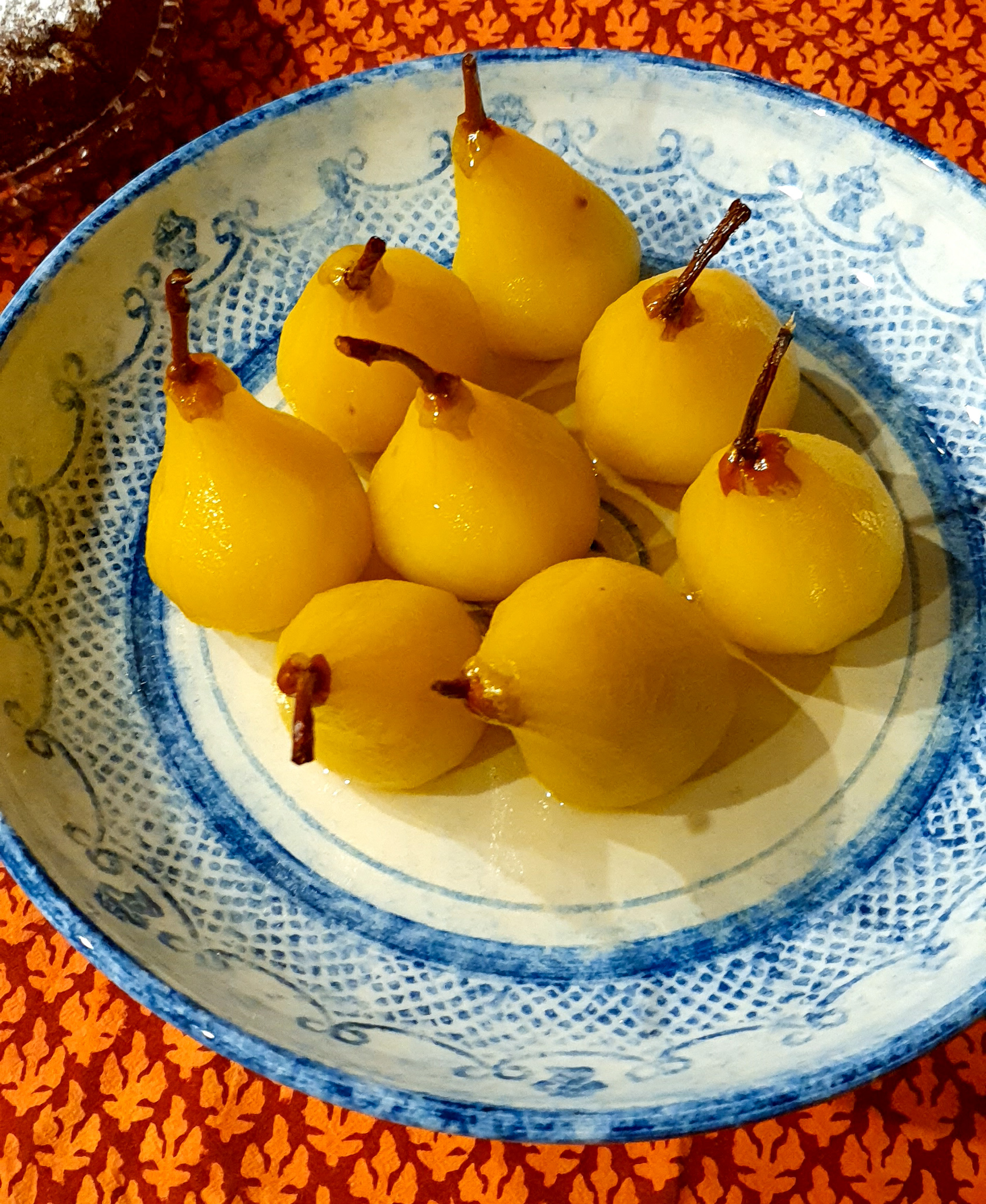 - 6–8 just-ripe pears, peeled with stems intact