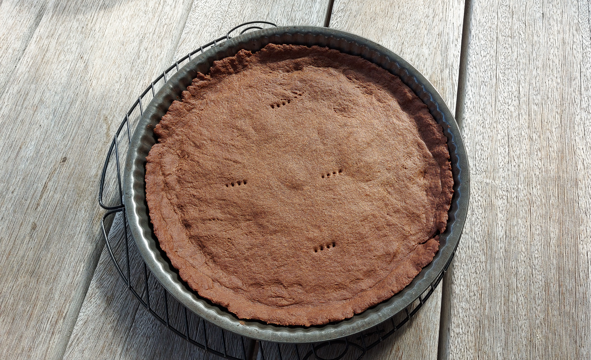 Use any sweet pastry case you like—your go-to recipe, the one above, or my favourite one here. A bit of good cocoa powder added into the base goes nicely with the filling.