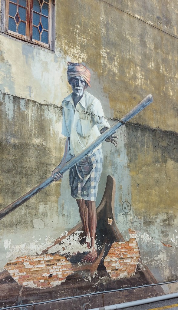 See Penang street art map here, but really you can’t miss them… they are everywhere and catch your eye all the time. You can’t help yourself from being on the look out continuously and noticing them all the time. Then when you do find one it gives a little surprise and makes you smile as you wonder who has painted such a whimsical and touching scene.
