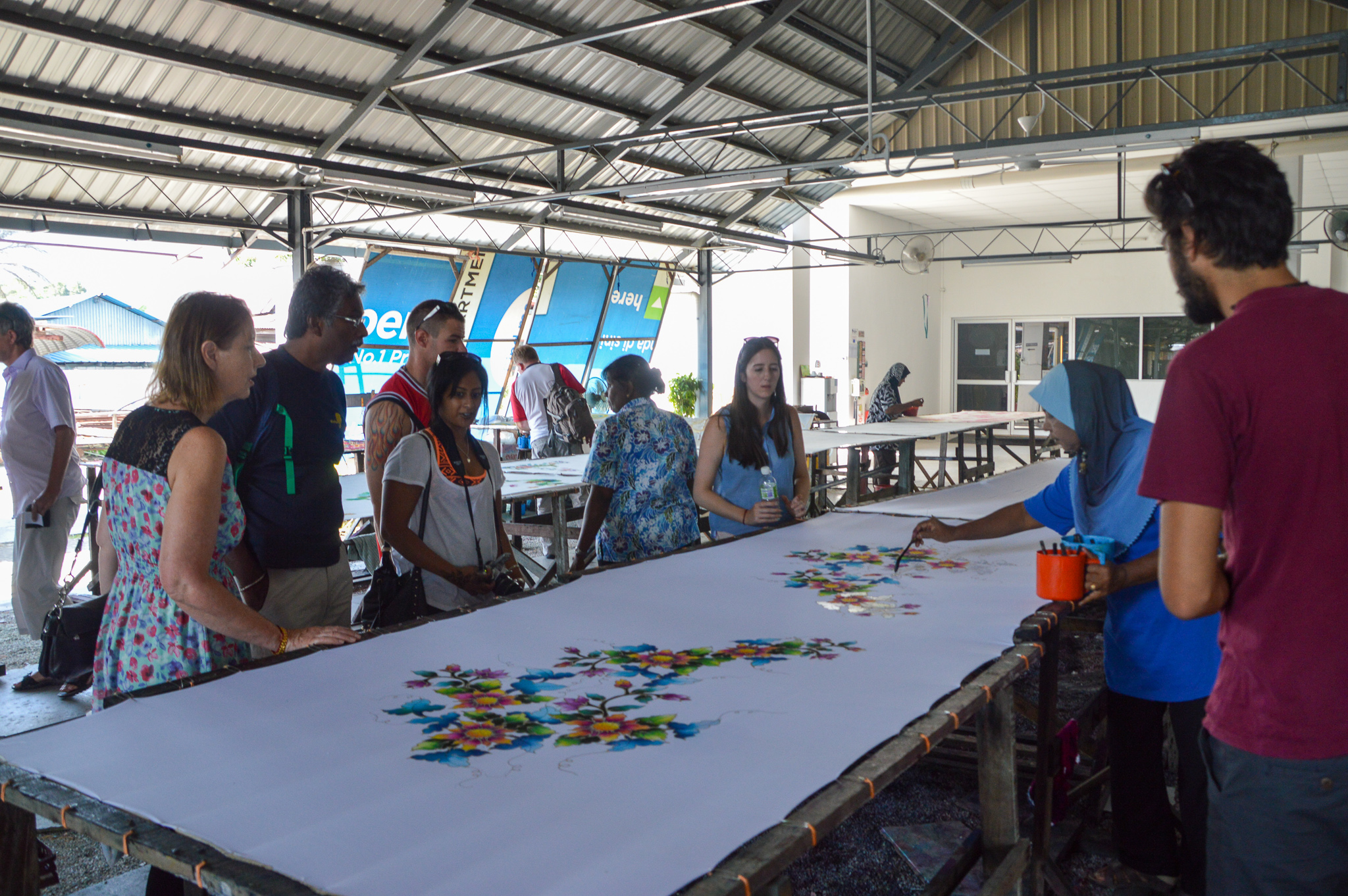 The trip to get there was interesting and felt like we were on an adventure because we decided to take the bus. This involved a long walk to the bus terminal and a long, windy trip past the outskirts of the town along the coast and several beaches, stopping all along the way to pick up and drop off passengers. But you know me, I can’t help but chat to local people, most of whom were heading off to work in the hotels along the way. After lots of smiles, waves and good old chin wags the driver dropped us at the factory door and the helpful staff allowed us to tour the factory and take photos of the artists making the beautiful designs.
