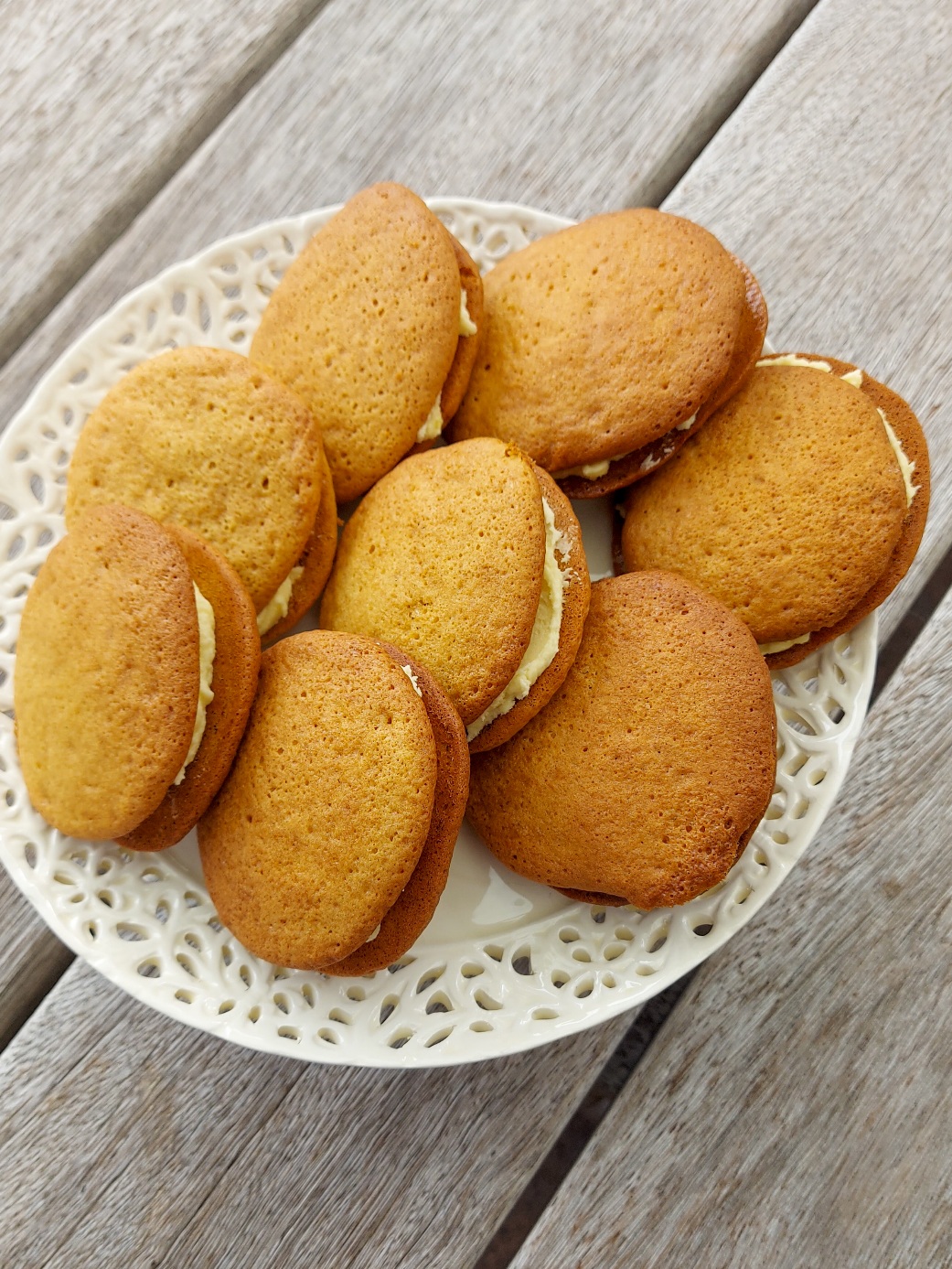 Soft, golden ginger-flavoured sponge rounds sandwiched with a creamy, buttery filling. Perfect for afternoon tea or a special homemade treat.