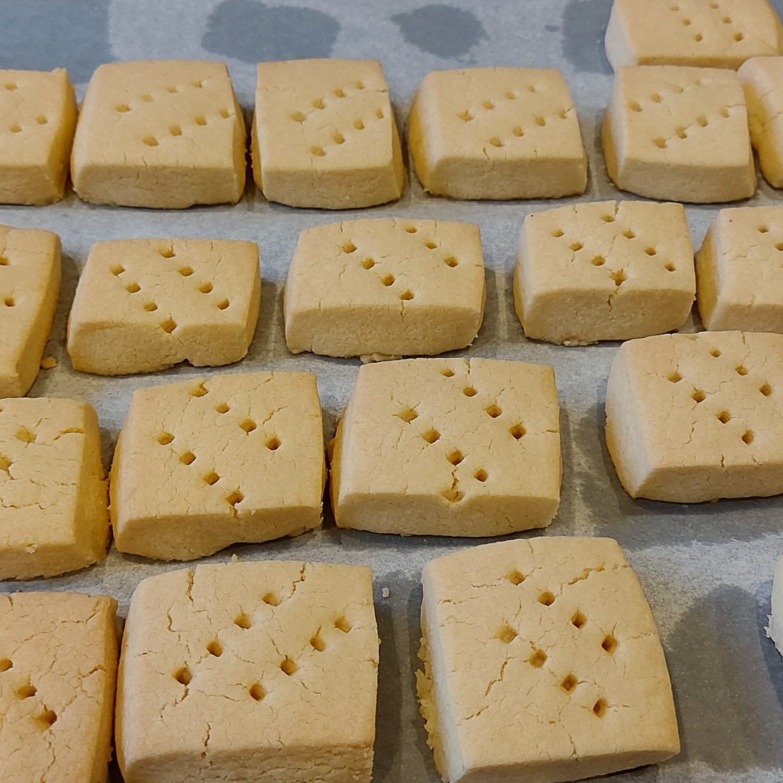 6. Bake: Place the shortbread on a baking tray and bake for 30 minutes at 150°C. The edges should be just beginning to turn golden.