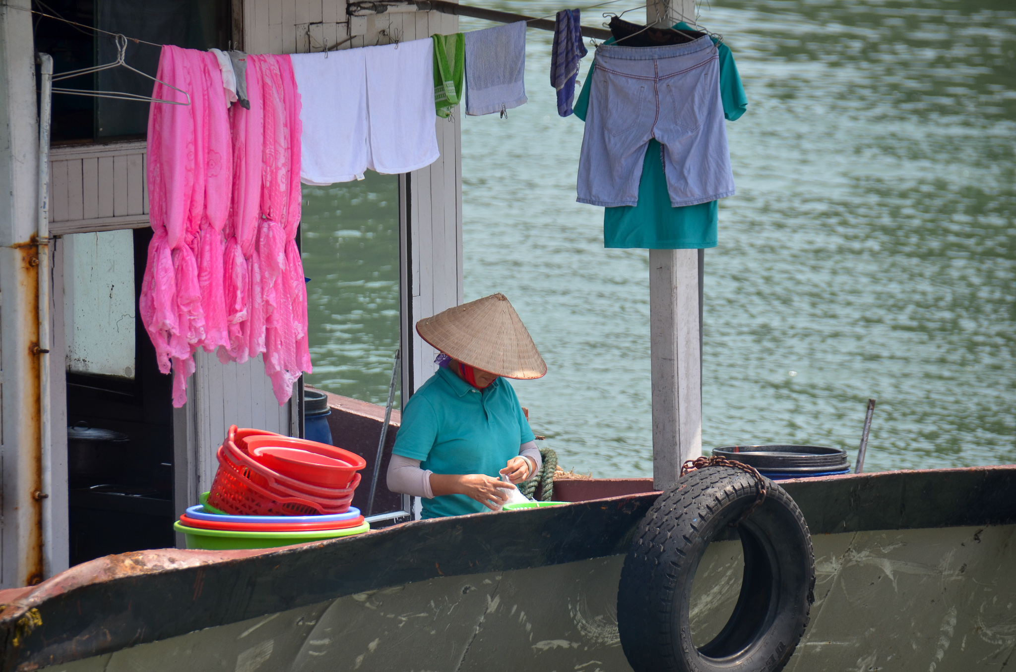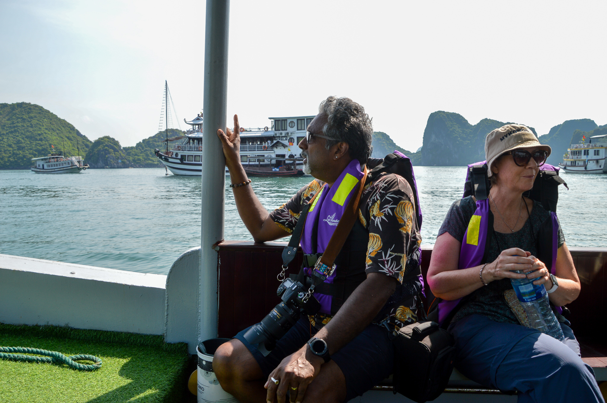 Up and off by 5am because it was a long drive to Halong Bay and we had a boat to catch. We had previously been on this cruise but were thrilled to be taking our daughter this time and we’re glad that she loved it as much as we did. The cruise was stunning. Halong Bay is UNESCO World Heritage Site and popular travel destination and we enjoyed seeing the thousands of limestone karsts as we floated by.