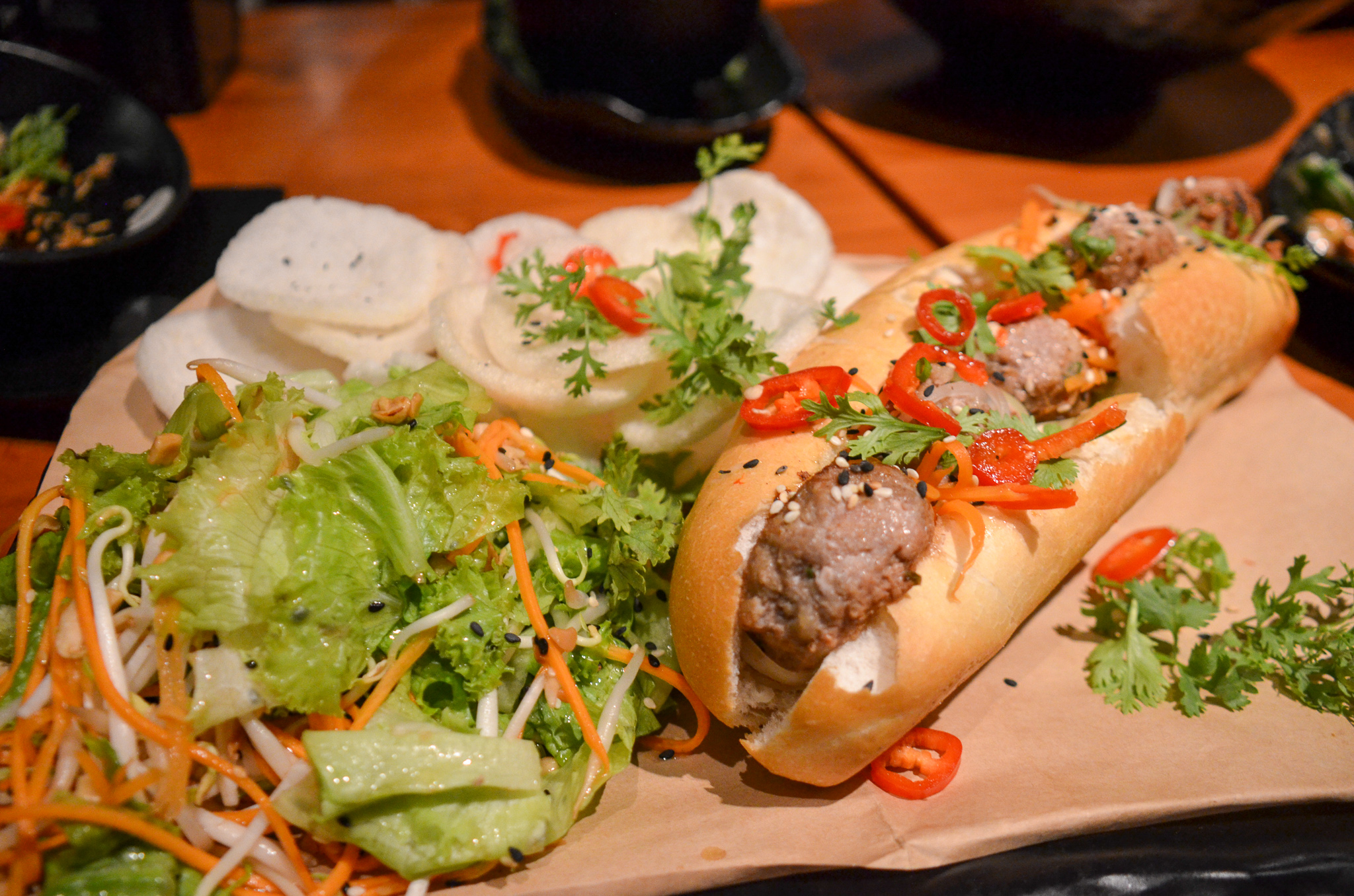 Dinner on the boat was a huge amount of fun. The crew looked after us well, they held a hands-on cooking class making Vietnamese spring rolls, served us drinks, and presented amazing food decorated with fantastical garnishes. We slept well.