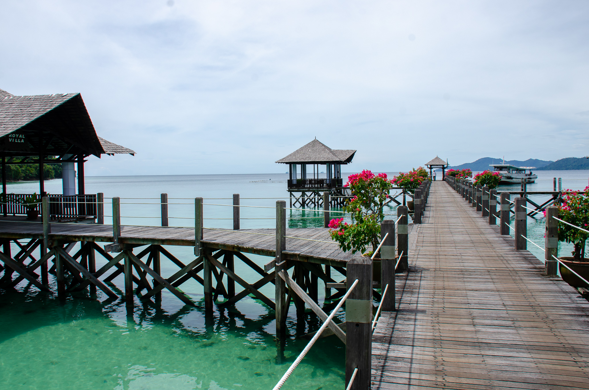 We were up and off to the ferry early the next morning. It was the day of our wedding anniversary and the ferry took us to Bungaraya Island Resort. Arriving at the island was stunning. It was warm and tropical, the entrance via long wharf was pretty, there were schools of fish at each turn, drums were playing and the manager was at the wharf to greet us.