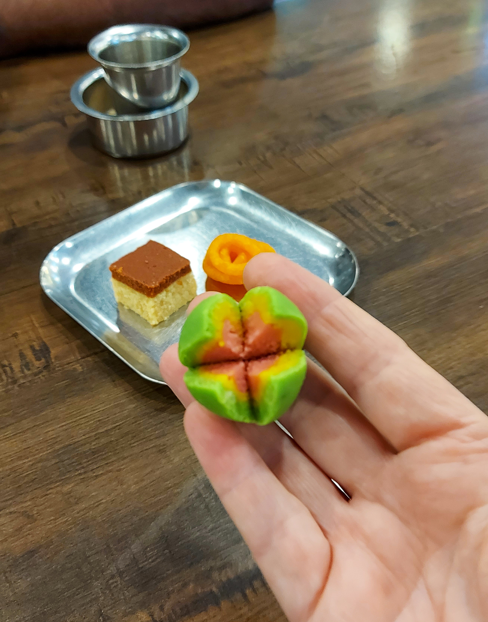 After a reminiscent visit to the Globe Silk Store, which used to be a beautiful department store in the early 1980’s we walked along to the New Madras Store to look for some kurtas and then on to Adyar Ananda Bhavan Masjid India for some teh tarik, vadai and Indian sweets.