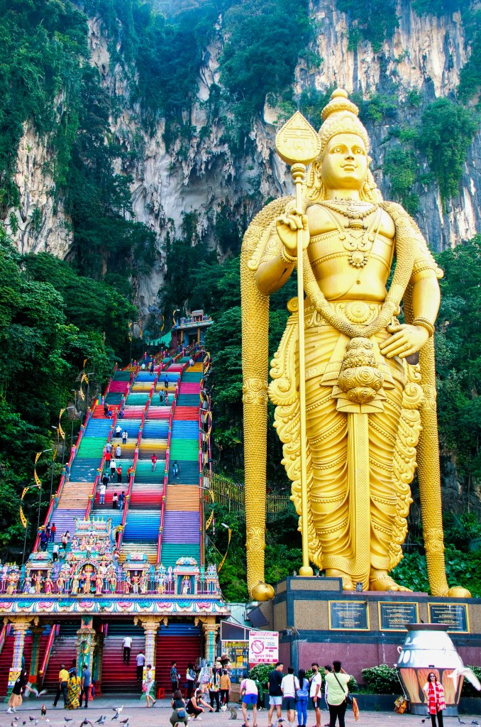 We always come to Batu Caves when in Kuala Lumpur and we love it. We love to wander around the temple where Basker will take part in a Hindu puja and we will normally climb the 272 rainbow steps to visit the temple at the top.