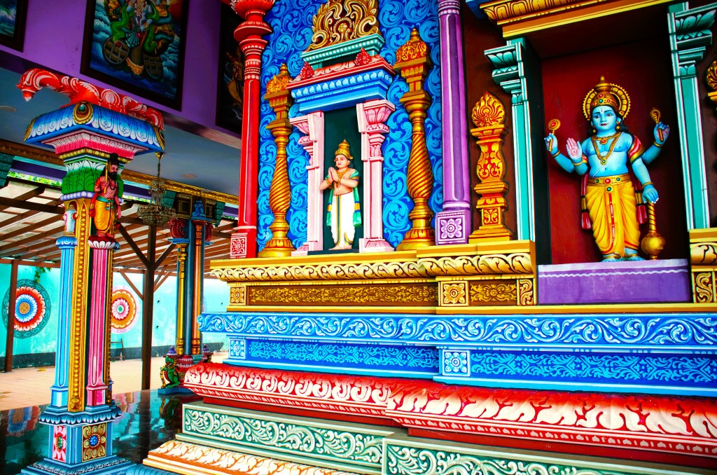 The temple at the base of the caves is beautiful and grandly decorated. There’s a ton of atmosphere; the scent of camphor, the sound of Hindu prayers, the smiles from religious devotees, wonderful.
