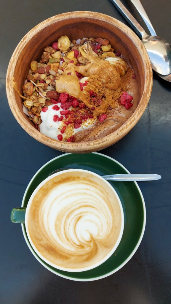 The Snickers smoothie bowl with Fix & Fogg Peanut Butter, Banana, Pink Himalayan salt, Organic Cacao & Maca is to die for. And the caramel slice was pretty damn good.