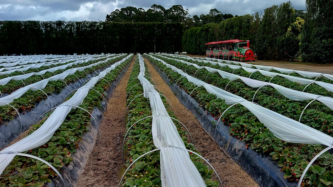 Pick your own fresh delicious strawberries, raspberries, blackberries, boysenberries and blueberries. There is a huge parking area, a fun playground for the kids which leads on to a pathway with a little train which will take you to large strawberry fields full of plump, juicy, sun-warmed strawberries.