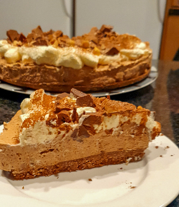 Make sure you blend all the biscuits in the food processor until they’re finely crumbed before adding any other ingredients. Turns out if you dump everything in at once, the butter will just clog up the mix and you won’t get a smooth consistency.