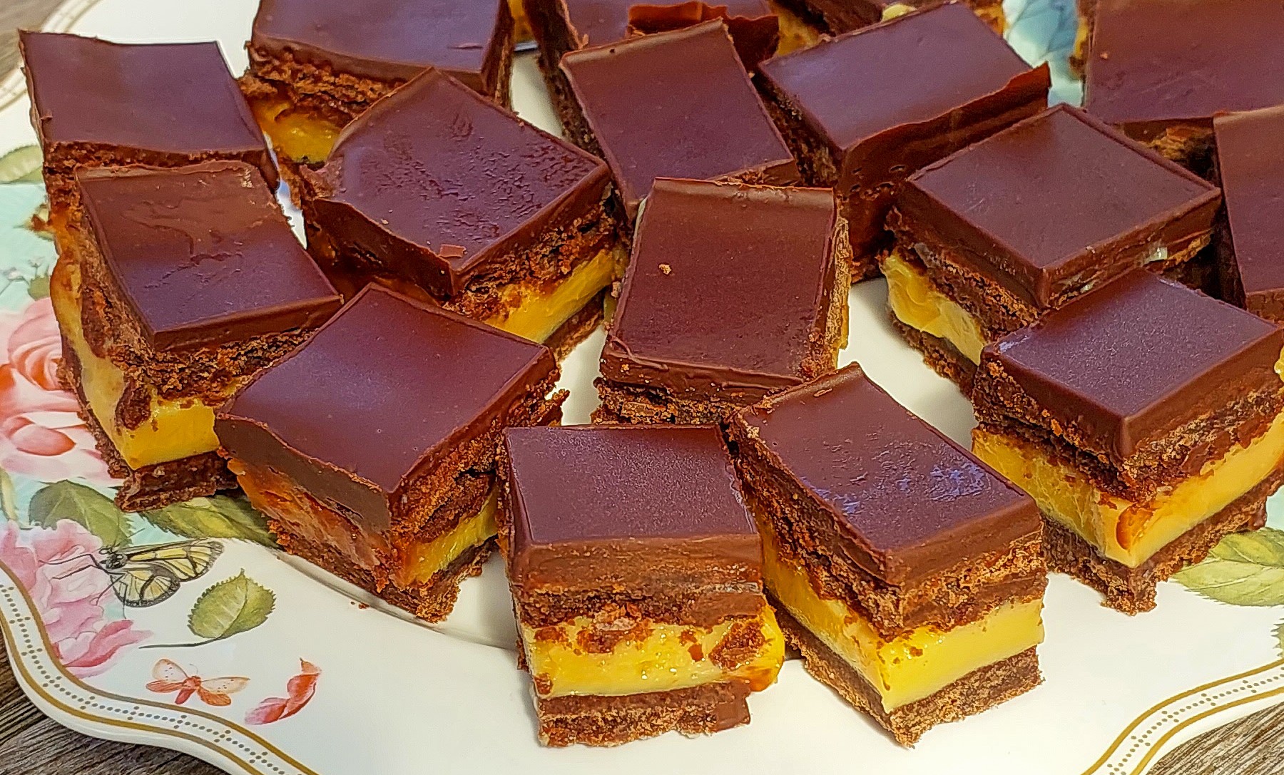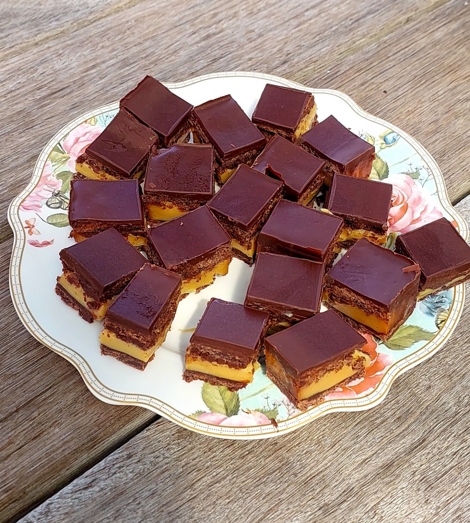 The only thing I’d change is the chocolate topping — it set quite hard, which made the slice tricky to cut neatly, and the filling tended to squish out the sides. Next time, I’d try adding a tablespoon of cream or a little butter to the melted chocolate to keep it softer and make slicing easier, or I’ll use this simple ganache recipe below for next time: