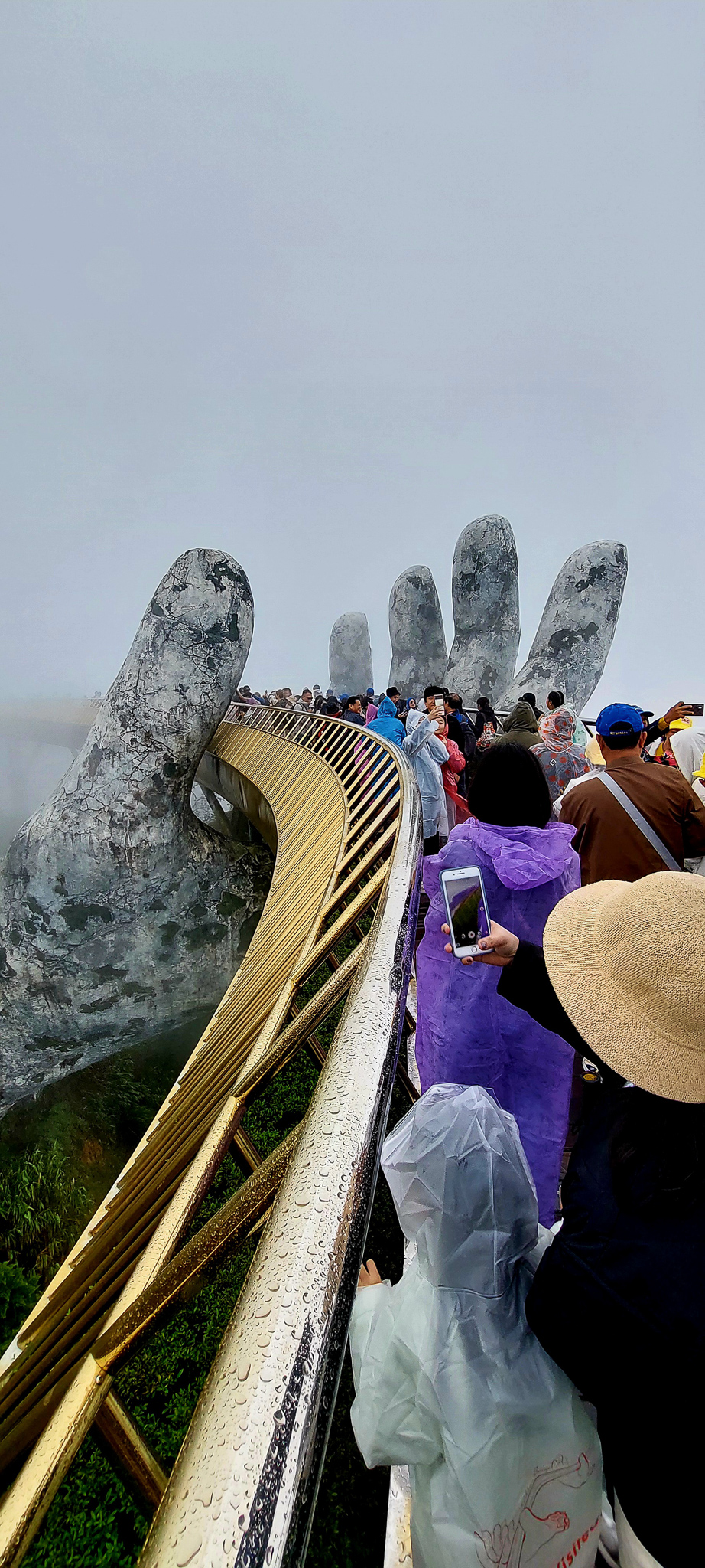 Golden Bridge: The best part of Ba Na Hills was walking on the Golden Bridge. It’s amazing! This bridge has a golden pathway held up by giant hands, and it gives you incredible views of the countryside from 1,400 meters above sea level… Well, unfortunately, we couldn’t see a thing. Sigh.