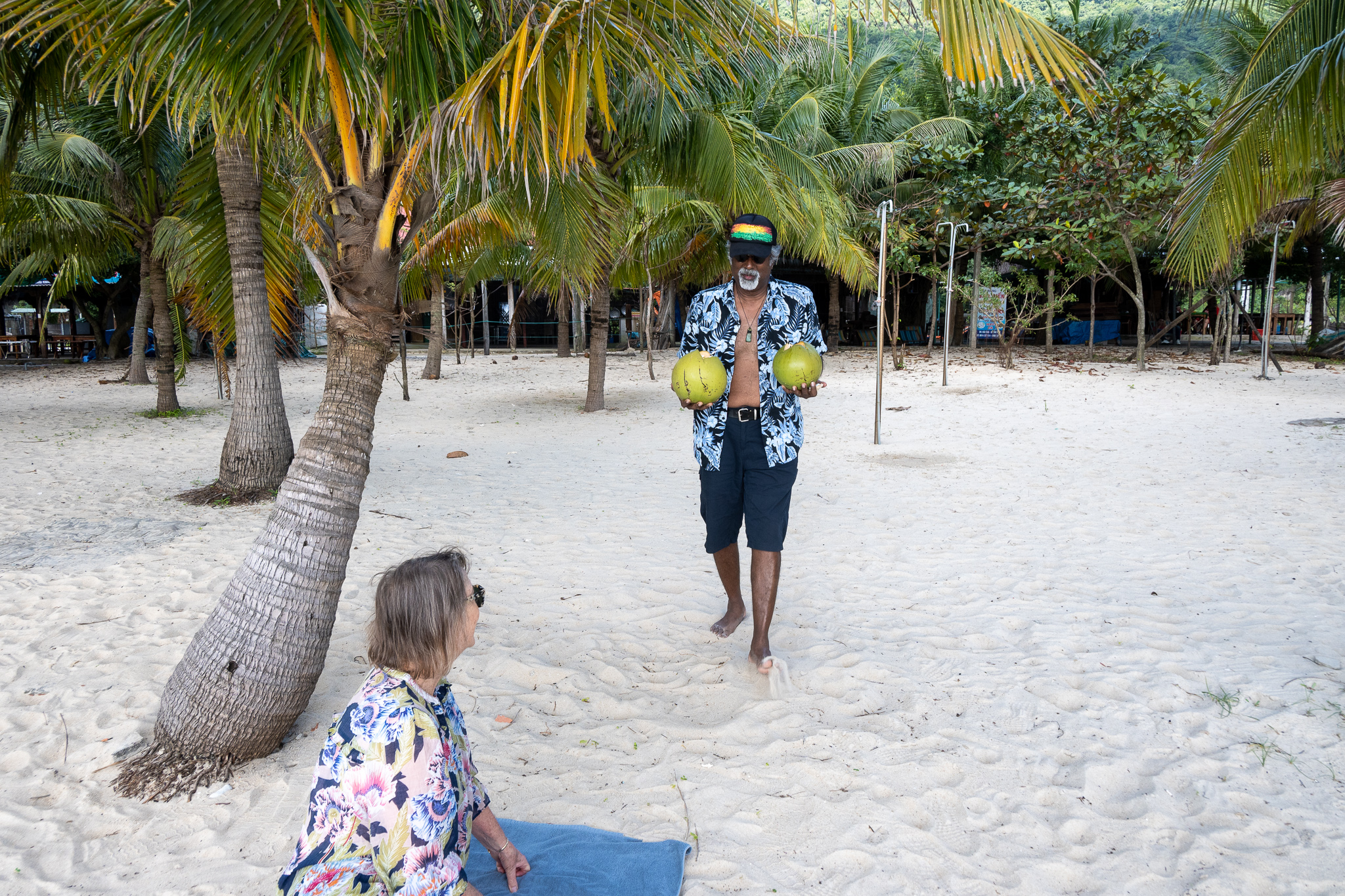 Exploring Lang Beach: We moved further along to Lang Beach and had a relaxing day on the beautiful white sand enjoying lunch and fresh coconut drinks… and tea. Since it was the off-season, there weren’t many people around. So pretty much it was a down day for us, too cold for us to swim, and we felt like we did not make the most of this place. In the height of summer it would be full of activity.