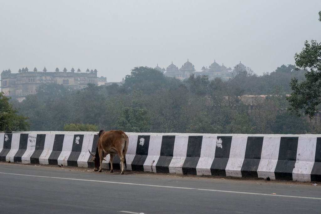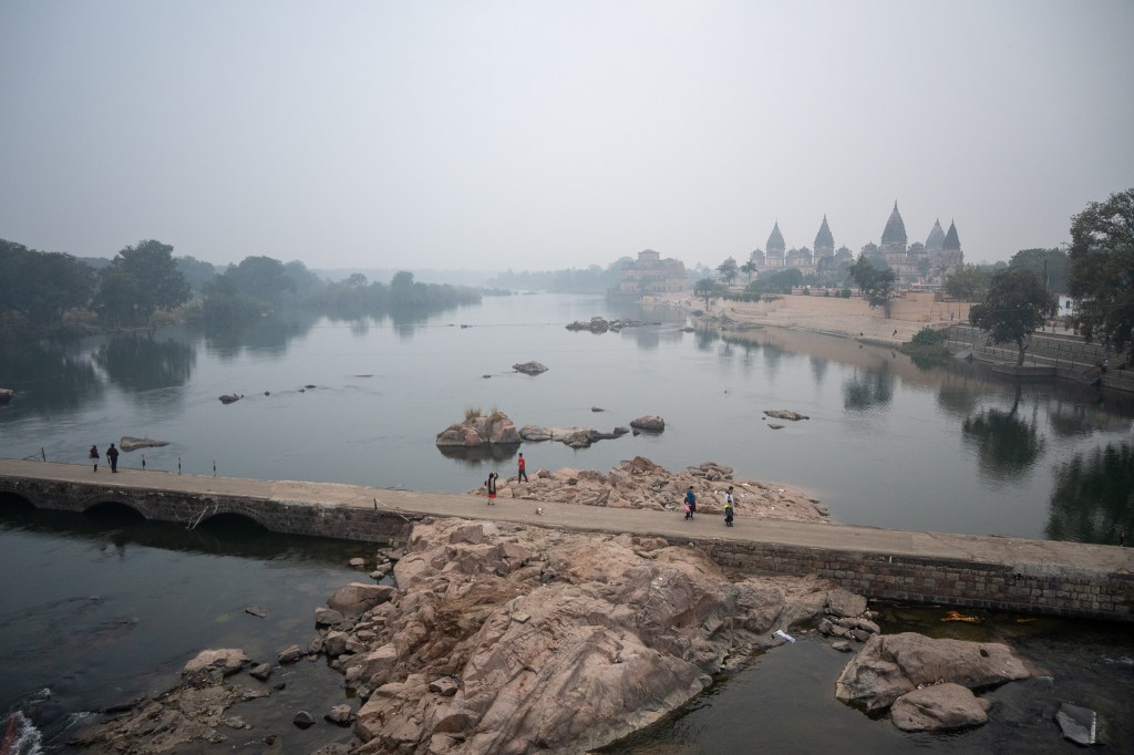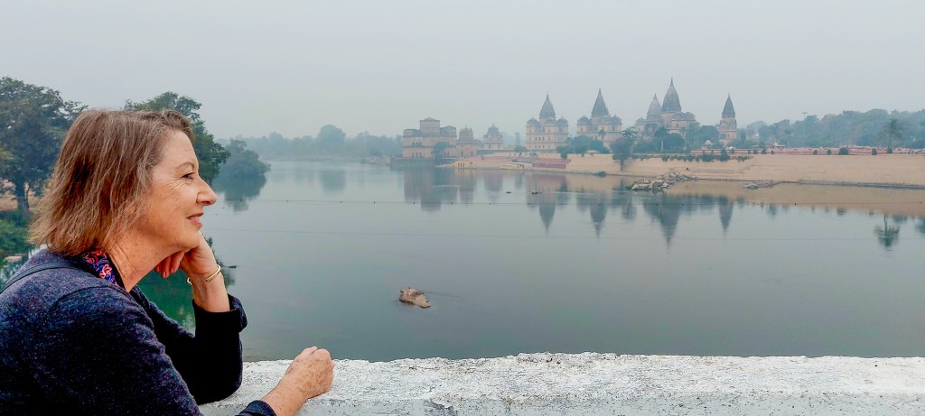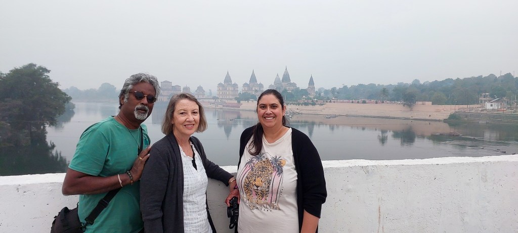 One morning during our trip to India from December 2023 to January 2024, we had a memorable drive from Khajuraho to Jhansi. We were on our way to catch the Shatabdi Express Train to Agra, when we decided to make a spontaneous stop by the Betwa River in Orchha. It was a chilly, foggy morning, and as we drove along, we suddenly spotted a lovely view. We asked our driver to pull over on a bridge so we could take it all in.