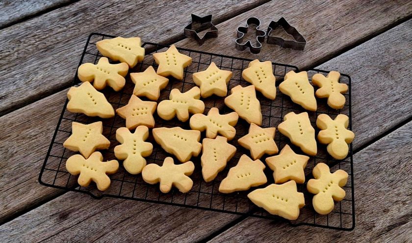I used my usual shortbread recipe from Auntie Betty, which you can find further in this post jump here and also on the blog here. It’s easy enough—just remember to roll the dough a little thicker than you might for regular shortbread. Try to get as many shapes out of it as you can, then gently knead and re-roll the dough until it’s all used up. Since these shapes are smaller than the typical squares I usually make, I reduced the baking time by 5-10 minutes.