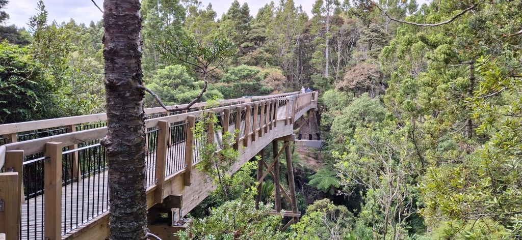 One of the highlights of the reserve is the 60-metre treetop boardwalk, which sits 18 metres above the ground. From here, you get a fantastic bird’s-eye view of the forest and the beautiful bush. The boardwalk also helps protect the environment by preventing the spread of kauri dieback disease, so don’t forget to use the shoe cleaning stations at the entrances—it’s an easy way to help preserve this amazing place.