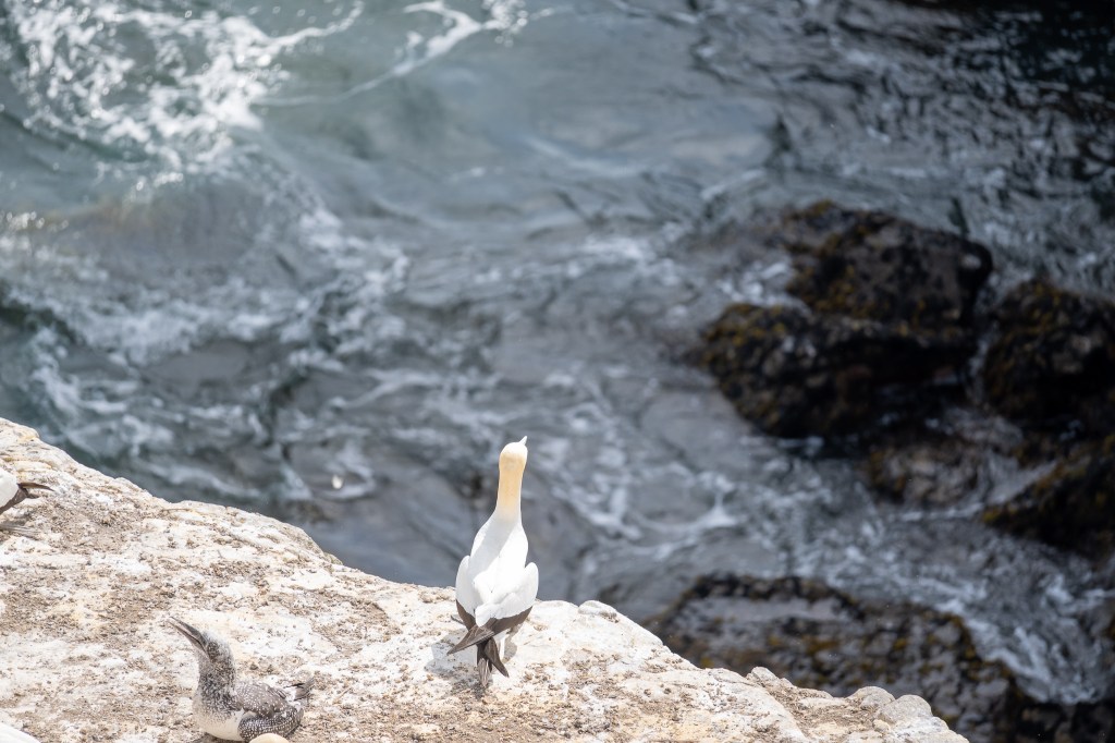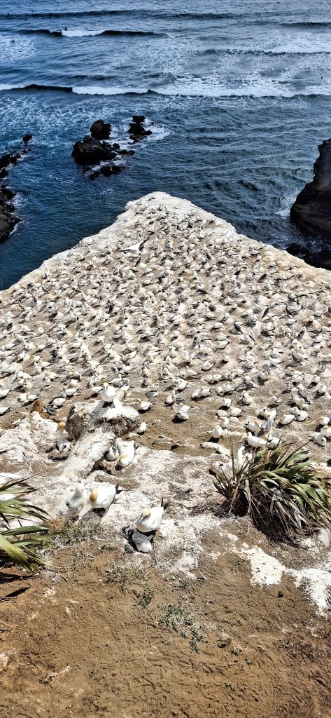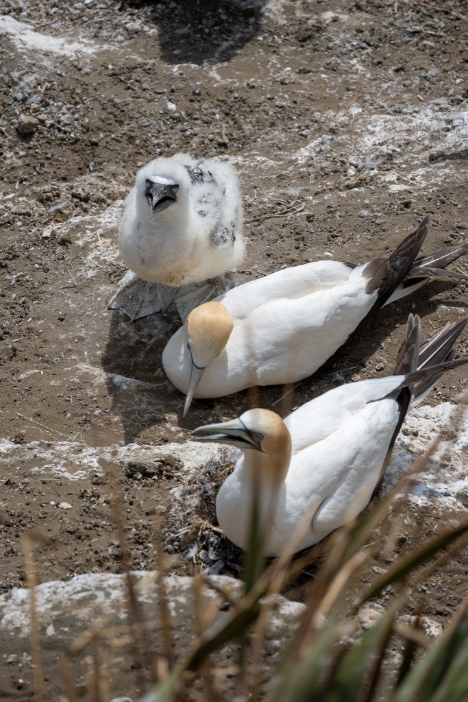 If you’ve never seen it, it’s worth the short walk up the Maukatia Gannet Track, which has recently reopened after some damage from Cyclone Gabrielle. See map of access track here. The view from up there is impressive, and you can get a good look at the chicks.