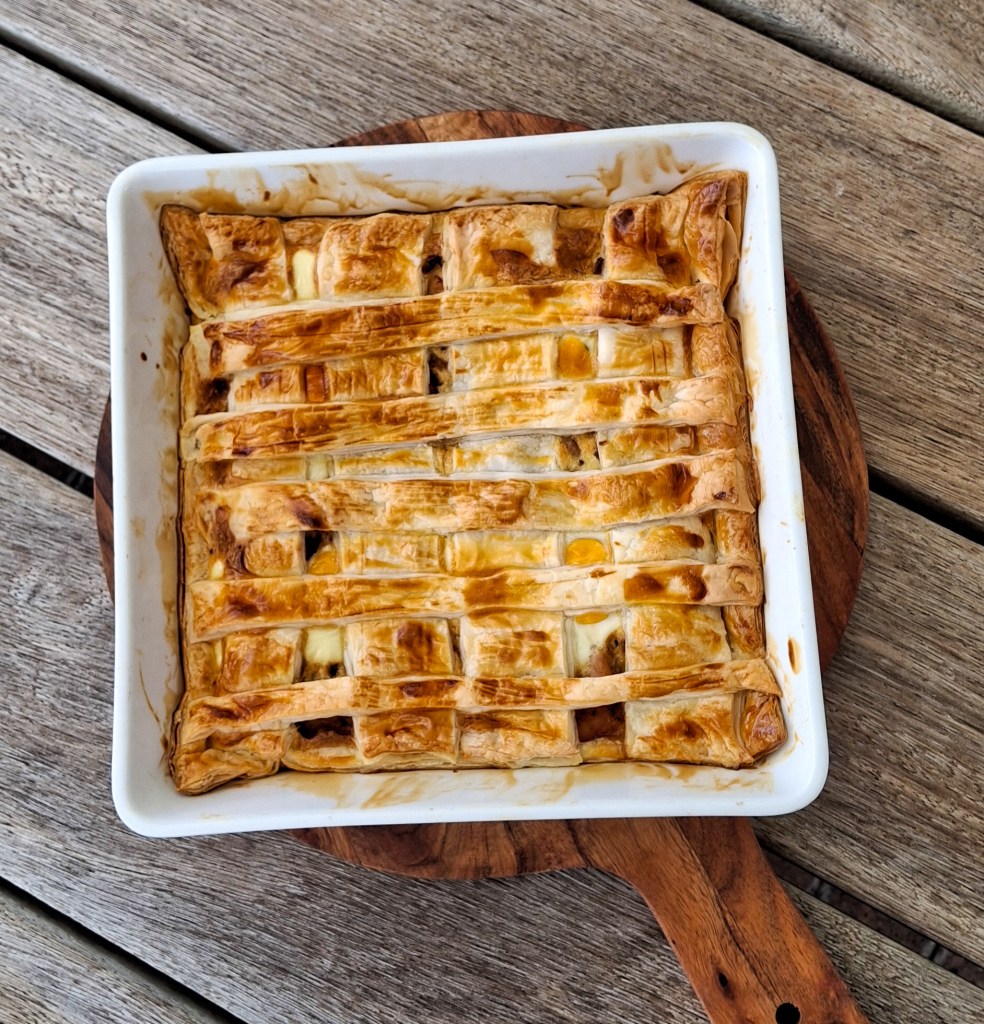 - Roll Out the Pastry: Roll out about 500g of the pastry to fit your baking dish, making sure it comes up the sides a little. No need to be too precise—it’s a rustic pie!