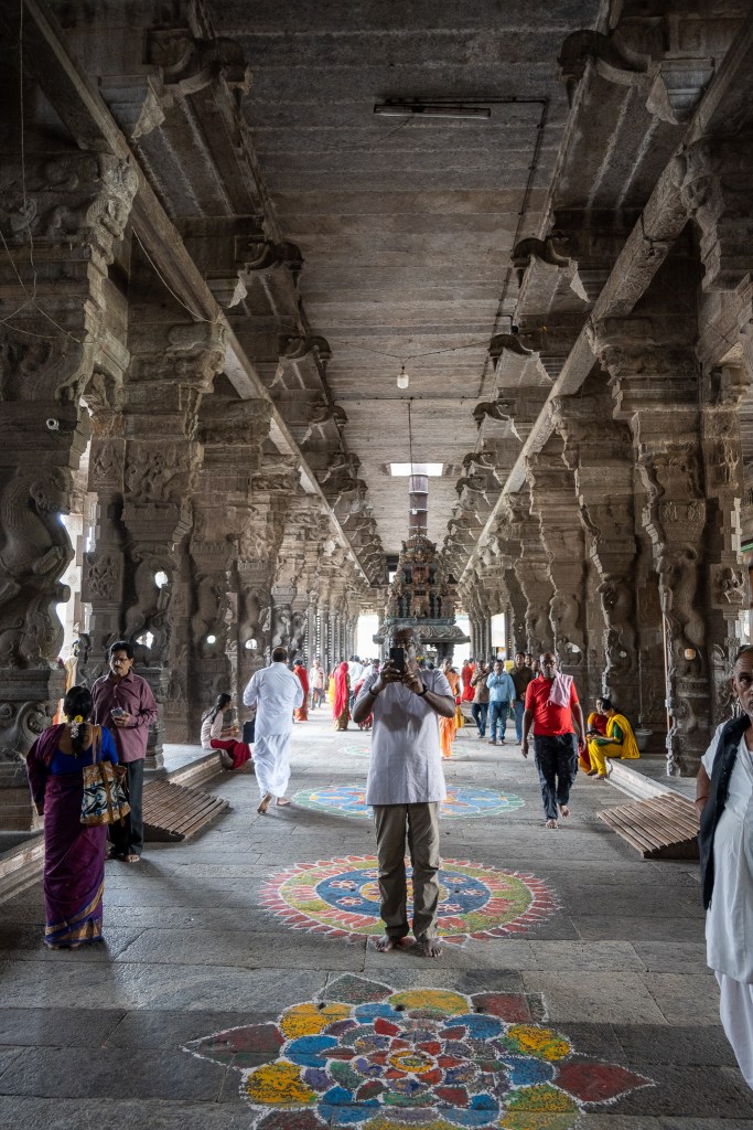 I enjoyed wandering around the temple admiring the architecture and beauty, though I wasn’t allowed into the inner sanctum. That was fine by me—I just used the time to soak up the atmosphere and practice sitting on the floor cross-legged while waiting for Nisha and Basker to visit the sanctum. When they came back, they were both excited and felt blessed, so it was a great experience for them. At first, Nisha wasn’t allowed in, she must have looked too foreign, but our guide intervened and they let her in, and I’m glad they did.