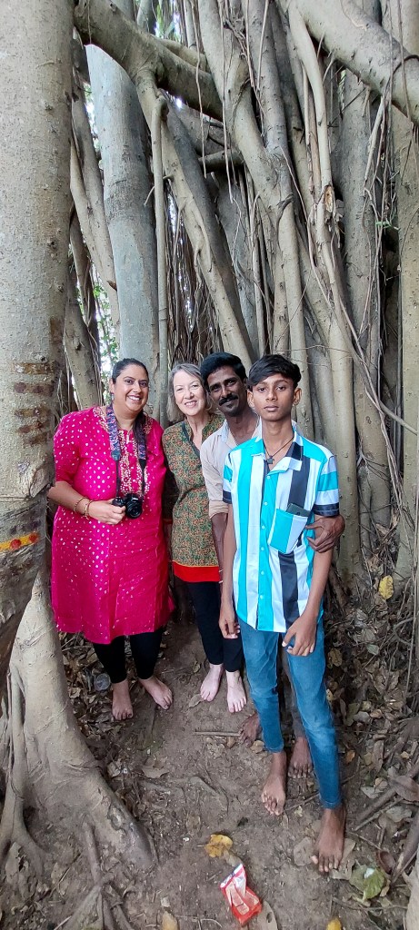 We then made our way to a nearby river, where we paddled across to reach the great Banyan tree. The river is essential to the village’s farming, providing water for the crops. It was a peaceful experience, surrounded by nature.
