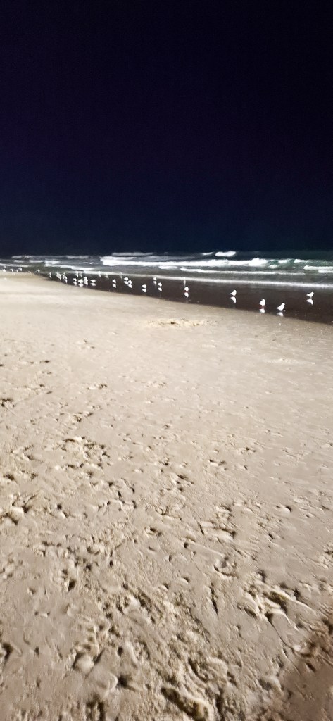 Although it was warm and lovely, it wasn’t quite warm enough for us to swim, though a few hardy souls were in the water, along with surfers enjoying the waves. The nights were very cool. But mostly, lots of people strolled along the beach, enjoying the surf, sand, and fresh sea air.