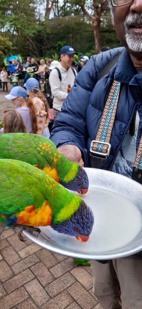 Highlights included pelicans, lorikeets 🦜, koalas, and wandering through the kangaroo area. The shady aviary was nice to explore, and the Aboriginal dance performance added a local touch. The lorikeet feeding was spectacular—hundreds of birds all at once!