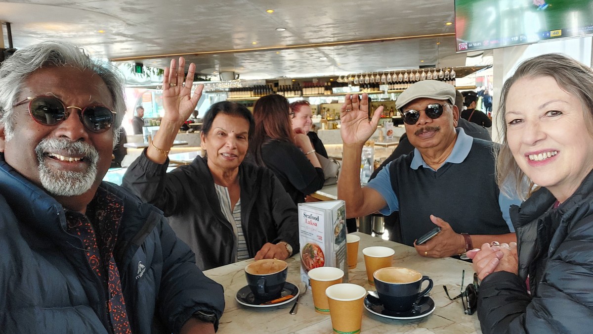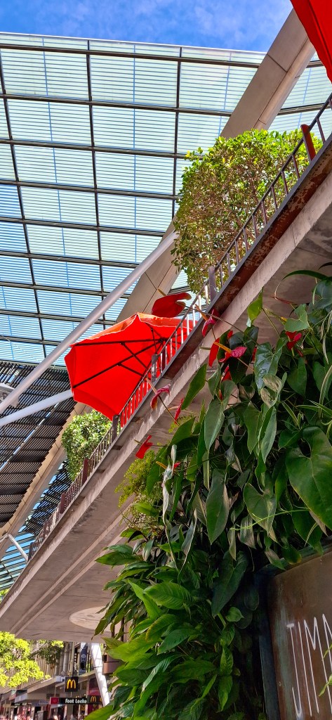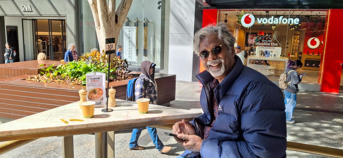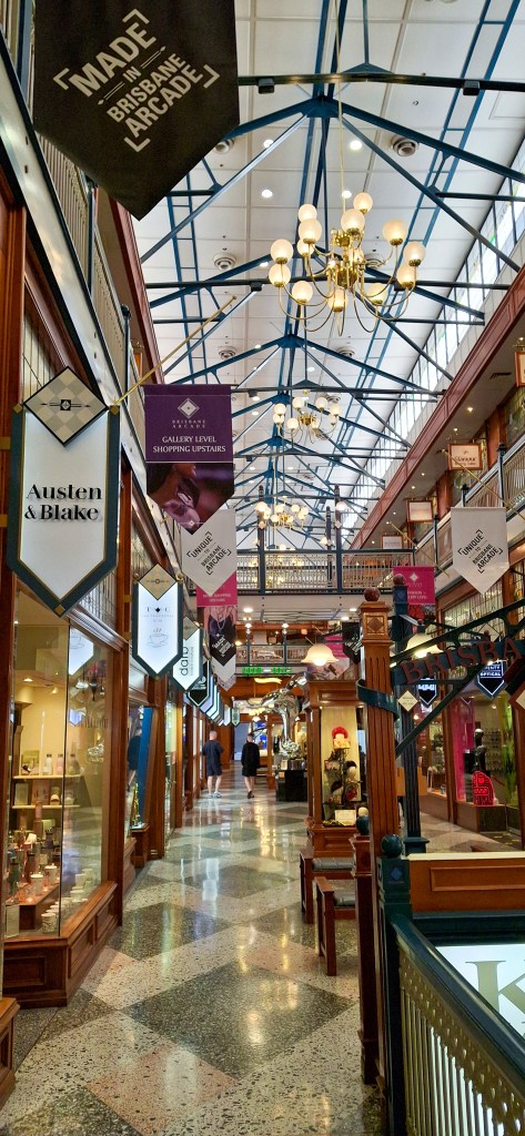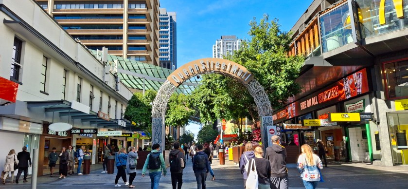 Big day today! We caught the light rail from Surfers Paradise North to Helensvale, then took the train into Brisbane, arriving at Roma Street Station. From there, we walked to Queen Street Mall, an outdoor mall, and grabbed coffee at Jimmy’s Café where we met with Saro and Logan. And after catching up, we all decided on lunch at a Malaysian restaurant.