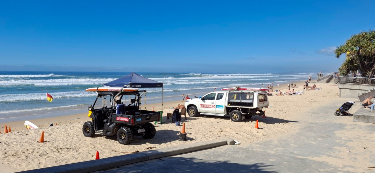 We noticed the beach has been resanded in many areas after the cyclone washed away a lot of sand, but some parts are still eroded and under work. Trucks, diggers, and a barge are busy moving sand, so it’s important to watch your step and be careful where you walk.