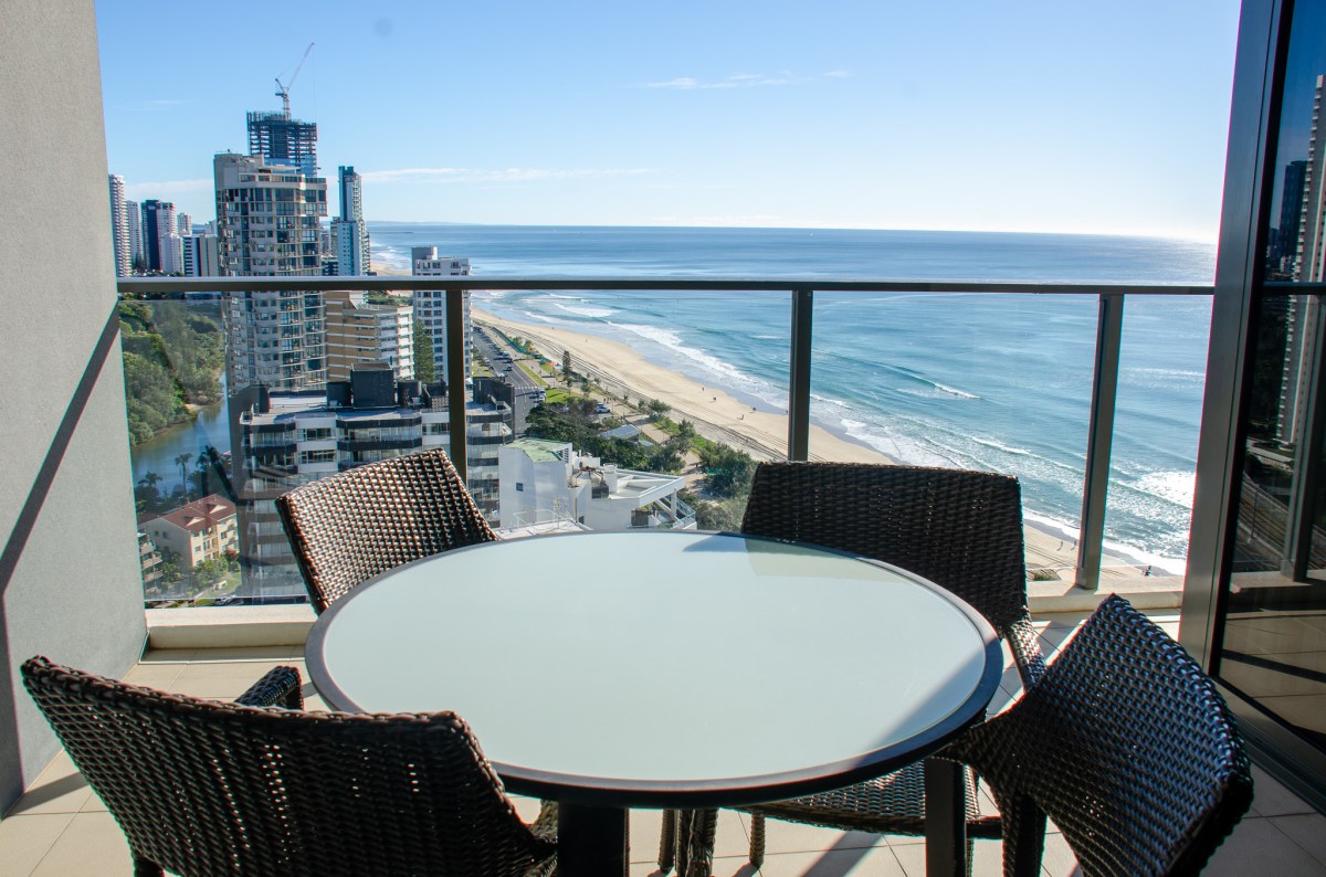 We landed at Gold Coast Airport just before 10 am, then caught the 777 bus to Broadbeach and hopped on a tram to Surfers Paradise. From there, it was a bit of a hot walk to our apartment at Rhapsody Resort, suitcases in tow (as everyone does!), with a quick stop for a cool drink along the way. If we had stayed on the tram for just two more stops, we would have landed right outside our apartment block! By the time we arrived, we were all hot and tired—but the stunning view from our apartment made it all worthwhile. Fabulous!