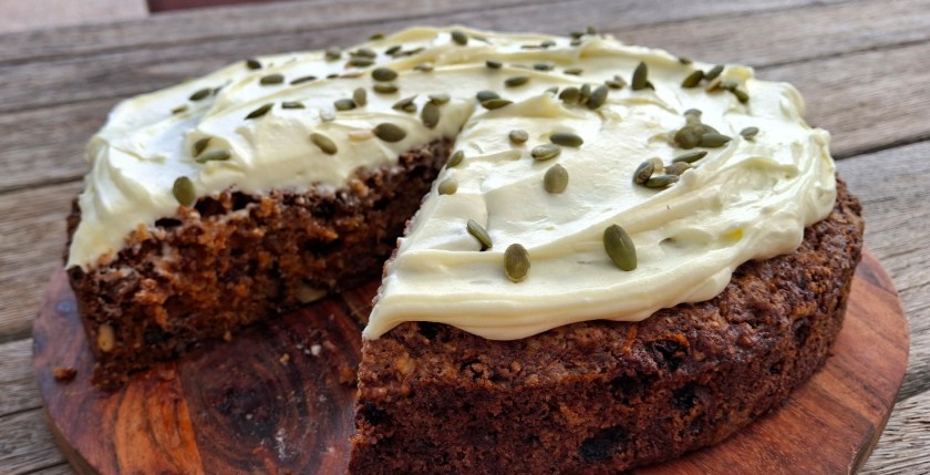 Easy Moist Carrot Cake with Cream Cheese Icing, Nuts & Fruit